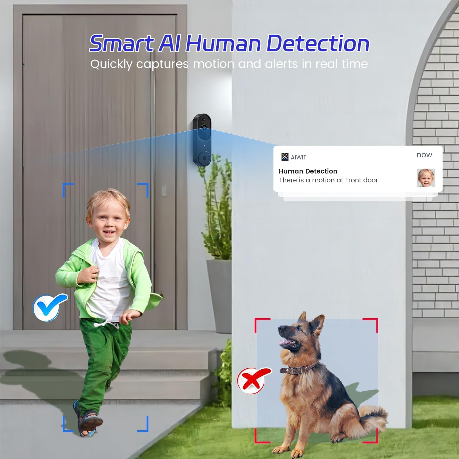 Introducing the 1080p wireless video doorbell with an indoor chime, designed to provide smart home protection. This doorbell features AI human detection, 2-way audio, night vision, and AES-128 cloud storage. With AI human detection, the doorbell can detect human movement and alert the user, providing an extra layer of security. The 2-way audio feature allows the user to communicate with the person at the door, which can be useful in situations where the user cannot answer the doorbell or wants to confirm the identity of the person at the door.