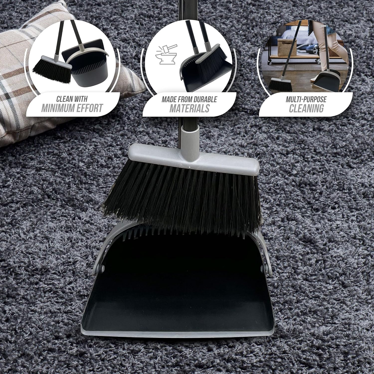 The set comes in a stylish black and grey color, making it a great addition to any home or office. The broom and dustpan are made with durable materials, ensuring that they will last for years to come.