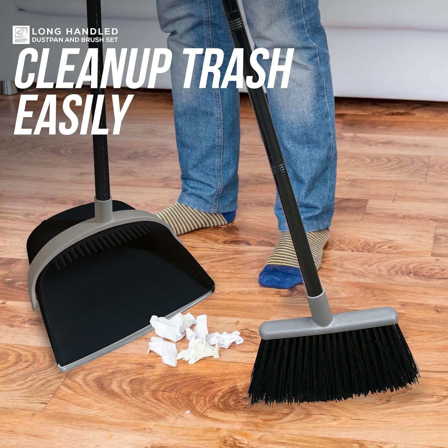 The long handle on the dustpan and broom is designed to make cleaning easier and more comfortable. You can now clean hard-to-reach areas without having to bend down, which can be uncomfortable and even painful.