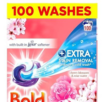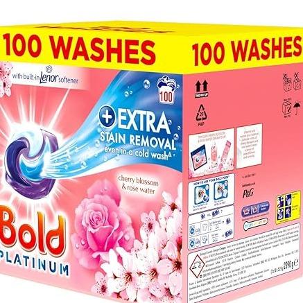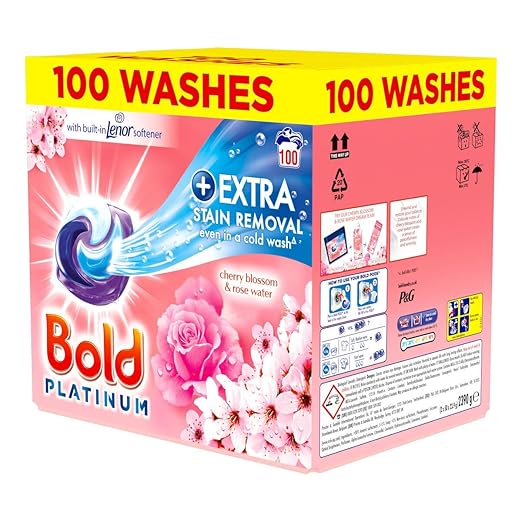 With 100 washes in each pack, Bold Platinum Pods are a great investment for those who want to keep their laundry clean and fresh for a long time. The Cherry Blossom & Rose Water scent adds a touch of luxury to the laundry routine, making it a must-have for those who want to enjoy a clean and fresh-smelling laundry without sacrificing the quality of the detergent.