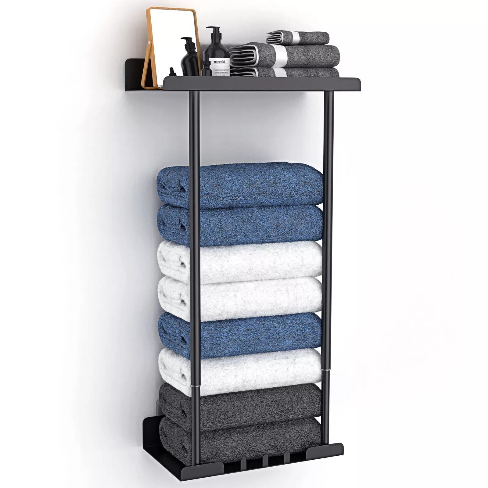 This metal shelf holder is easy to install and can be adjusted to fit your specific needs and preferences. Whether you need to store more or less towels, this towel rack is the perfect solution.