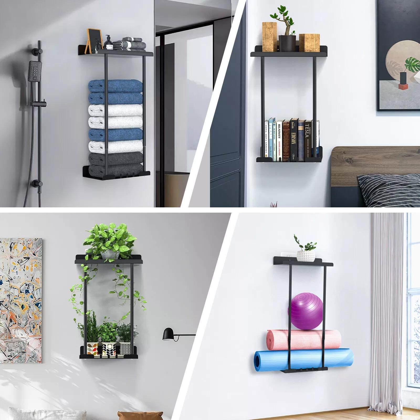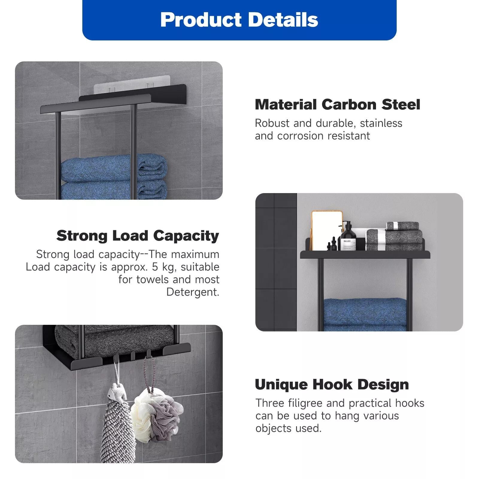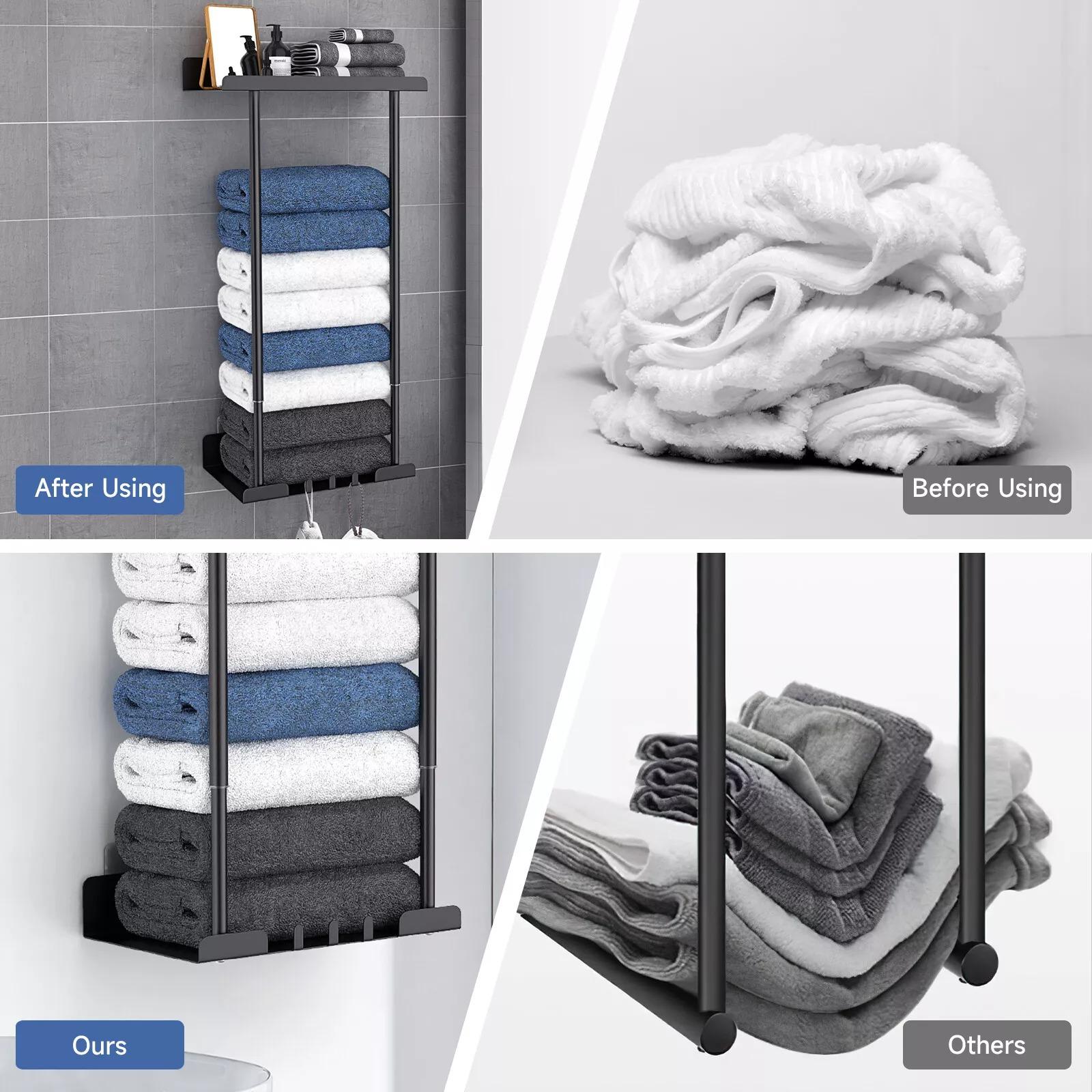 Introducing our wall-mounted towel rack, the perfect solution for keeping your towels organized and easily accessible in your bathroom. Made of durable metal, this towel storage organizer is designed to withstand the weight of multiple towels without bending or breaking.