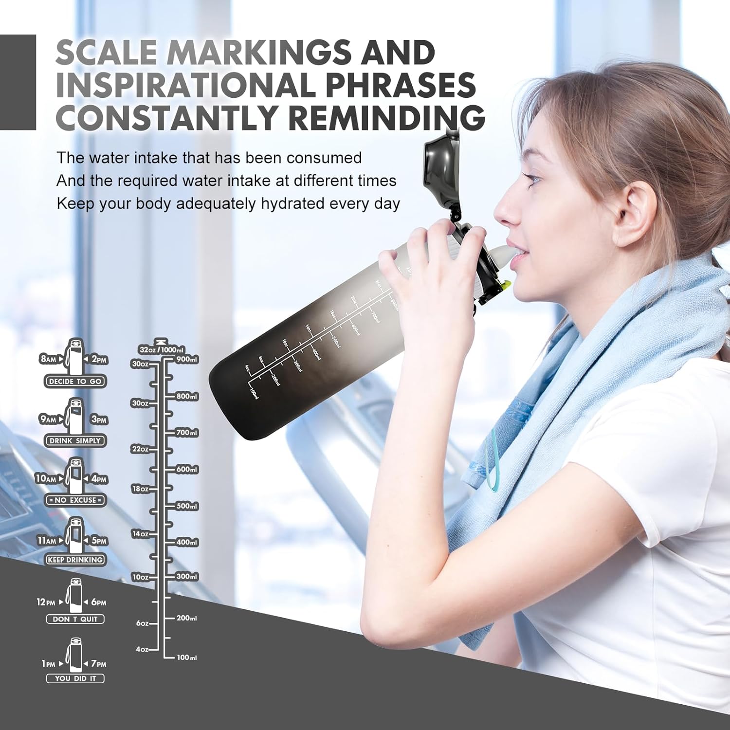 Stay on track with your hydration goals using the built-in motivational quotes and time markers. These features help remind you when to drink and assist in monitoring your water intake, making the bottle an ideal companion for weight loss, appetite control, and overall well-being.