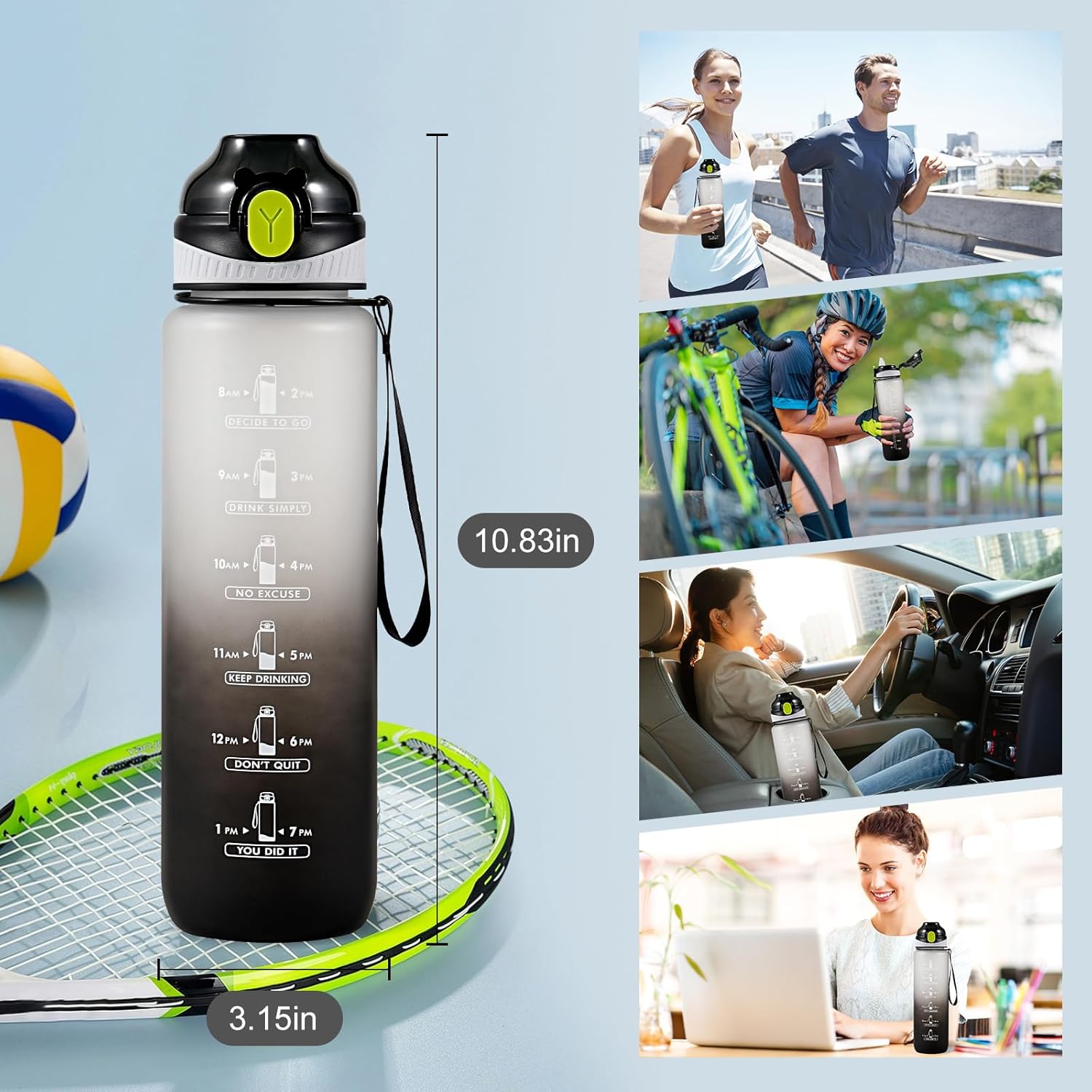 Stay hydrated and motivated with our 1-litre water bottle, crafted with your health and convenience in mind. Made from Tritan, a food-grade, reusable material that is both environmentally friendly and BPA-free, this bottle ensures a non-toxic drinking experience. Free from unpleasant odors and harmful chemicals, it offers exceptional strength, wear resistance, and durability, making it highly resistant to breakage for long-term use.